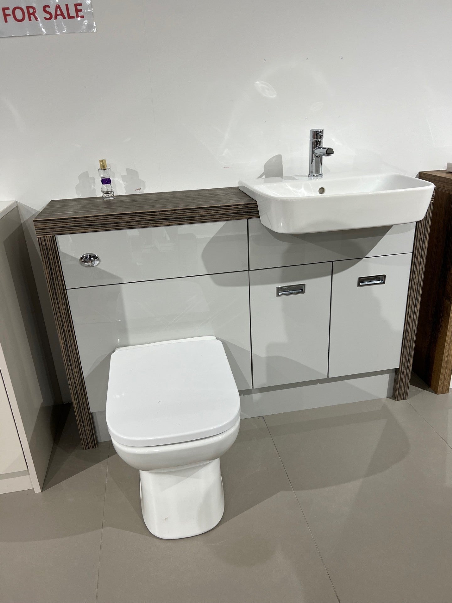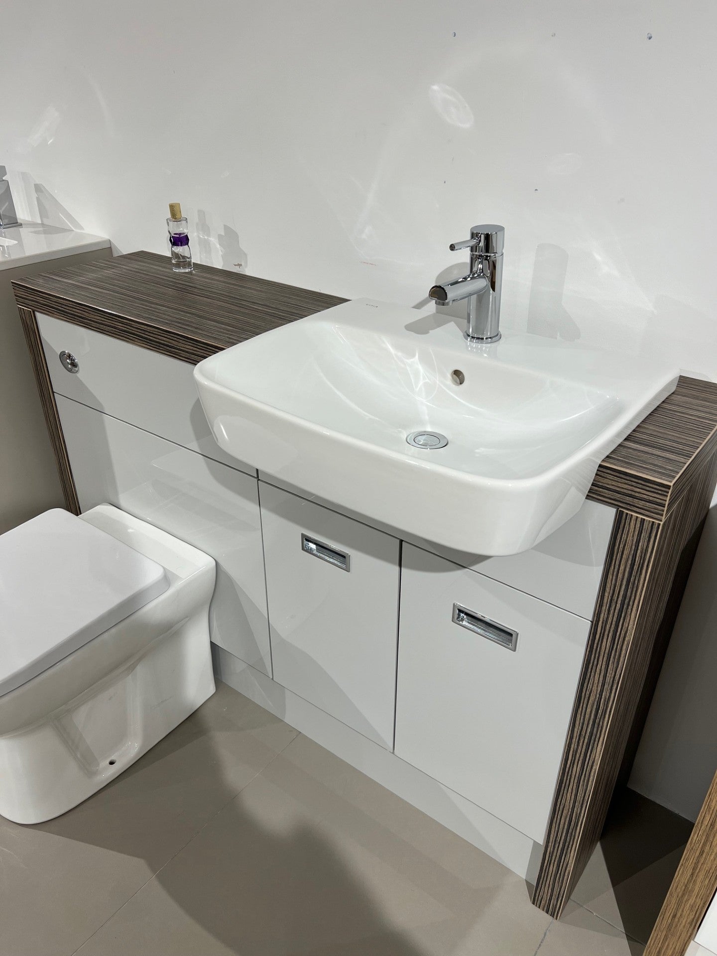 1300MM BATHROOM FITTED FURNITURE EX DISPLAY ZEBRANO / LIGHT GREY